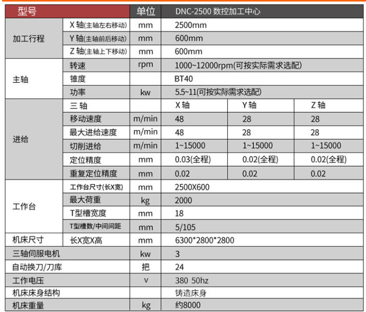 ☆加工行程:2500*600*600mm